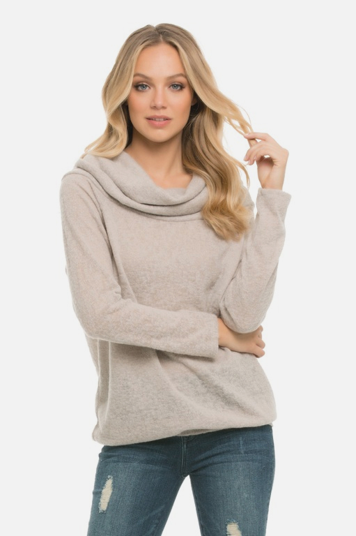Beige Melange Cowl-Neck Knit Sweater